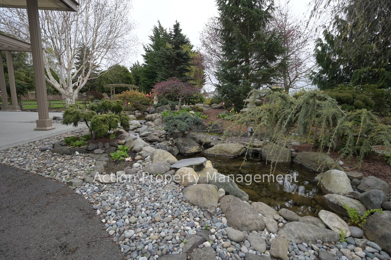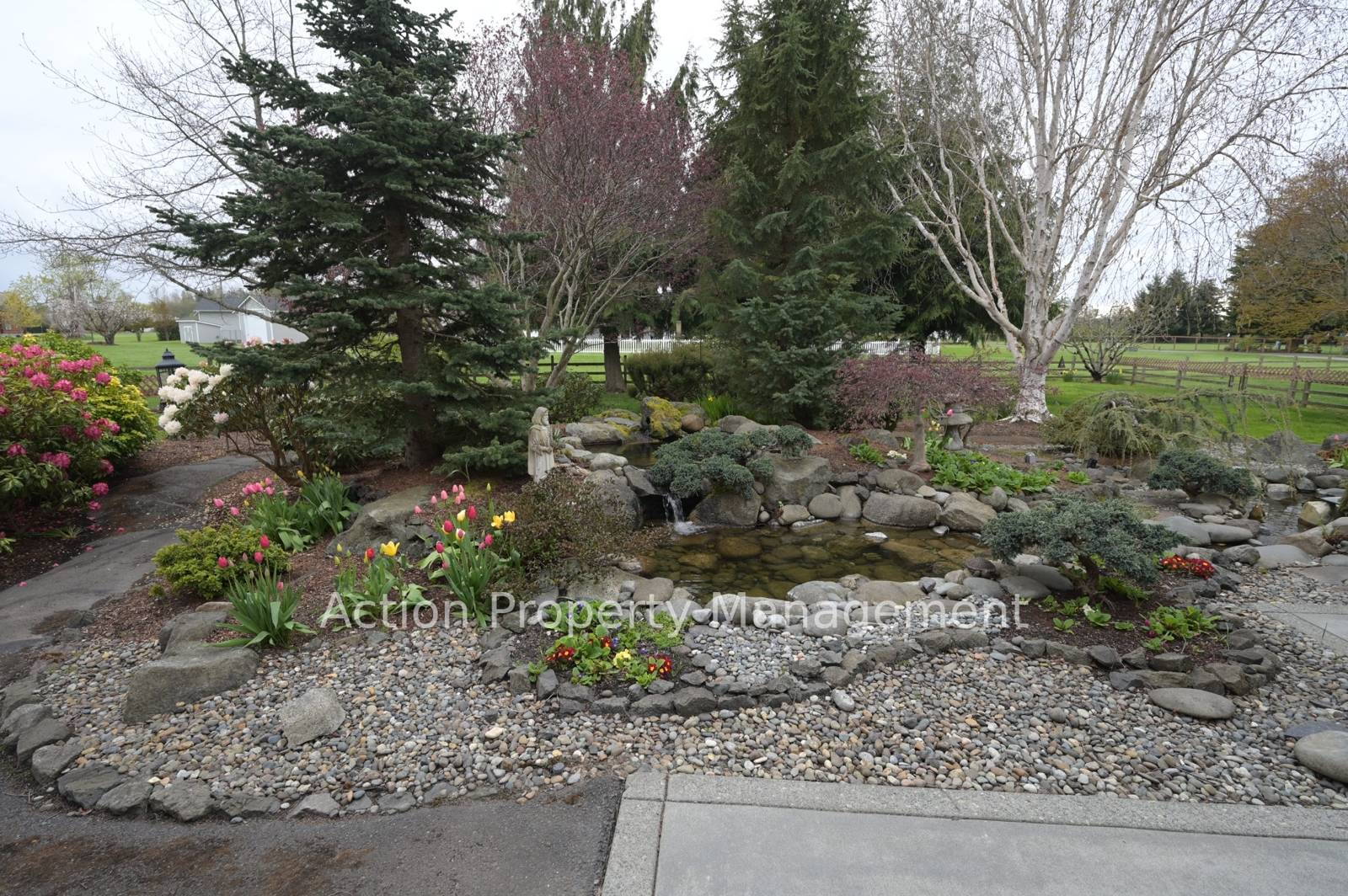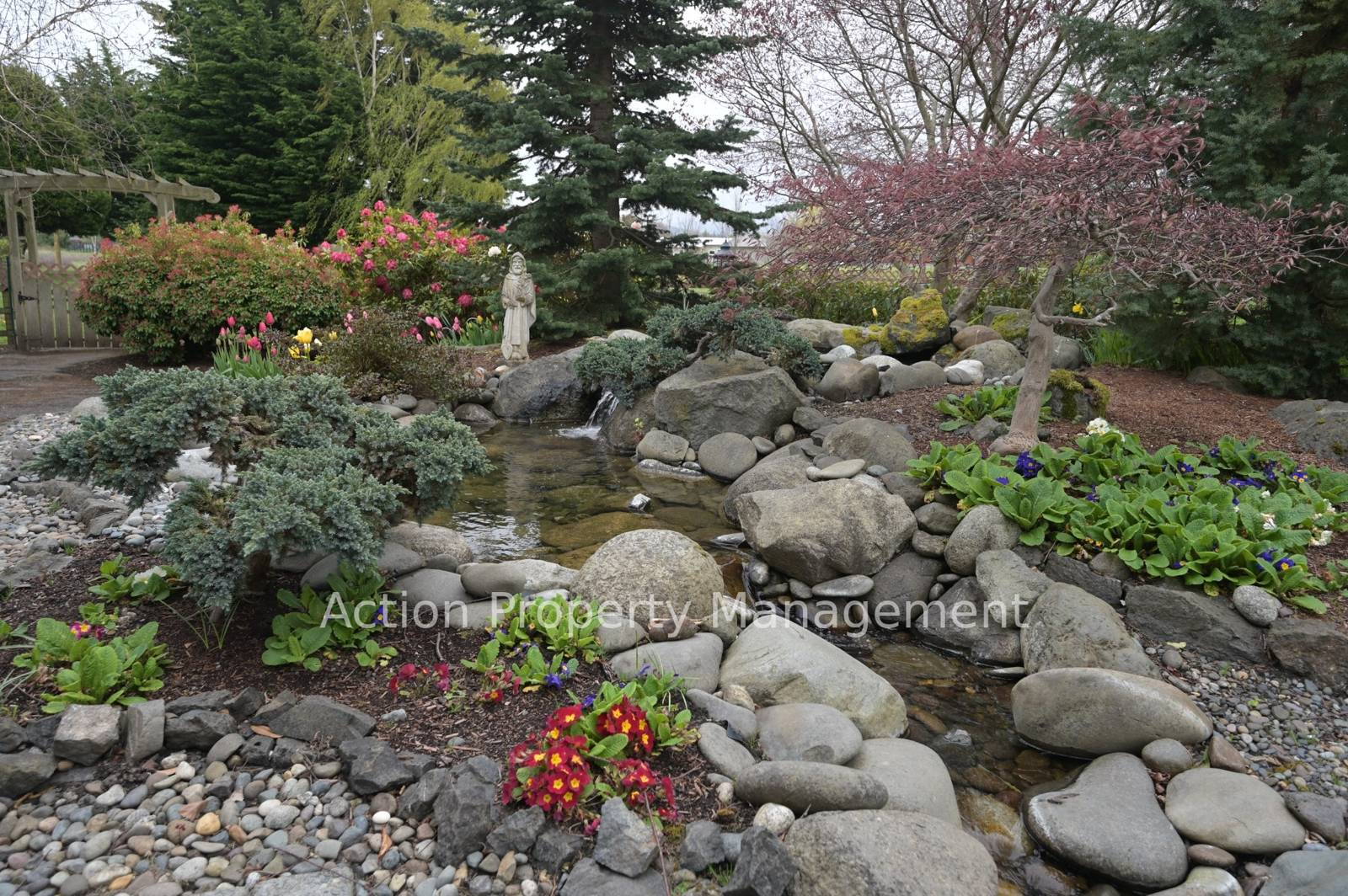 Beautifully landscaped yard with 3 ponds